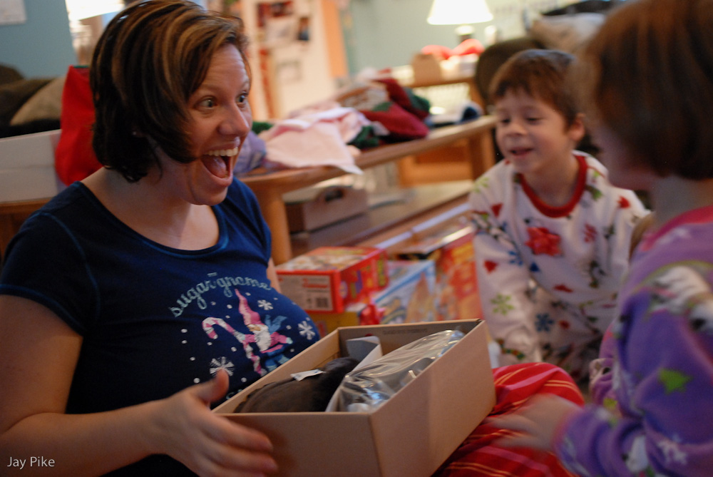 Blurry eyed jocie as she runs into the living room early Christmas morning.
