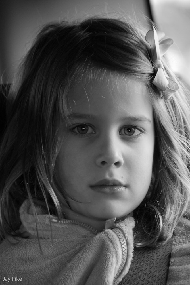 Jocie watching intently while driving in the car